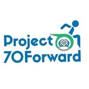 The words Project 70forward as a logo in blue font with an image of a person in a wheelchair with a heart in the center of the wheel